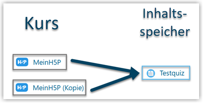 Wenn Sie die Aktivität H5P im Kurs duplizieren und in dieser Aktivität ein Link auf den Inhaltsspeicher besteht, wird der Inhalt im Inhaltsspeicher nicht kopiert.